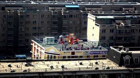 | 2 trường mẫu giáo và nhà trẻ ở Trường Bình, Bắc Kinh cho trẻ chơi trên mái nhà |