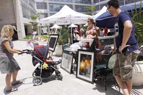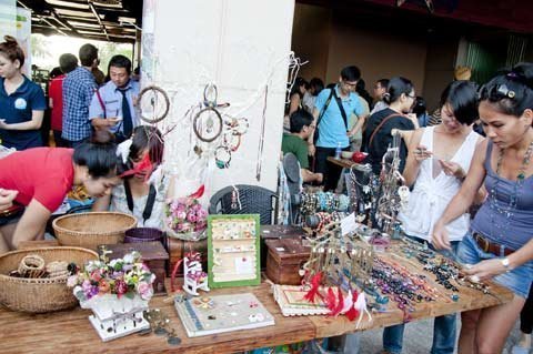 | Du khách mua sắm ở chợ trời Sài Gòn. |