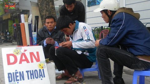 | Những nơi dán điện thoại, máy tính luôn hút khách, nhất là giới trẻ. |