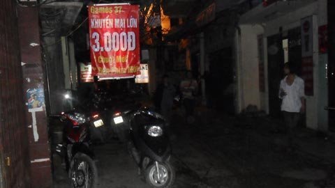 Hơn 1h sáng, quán game ở địa chỉ 14/87 Lê Thanh Nghị, Hai Bà Trưng, Hà Nội vẫn tấp nập người ra vào. Quán nằm sâu trong ngách, phải quen đường đi lối về mới biết đến nơi này. Theo bạn N.V.T (sinh viên Trường ĐH Bách khoa) - khách quen của quán bật mí: “quán này phục vụ suốt đêm, ngày nào cũng thế. Hôm nay là bình thường, chứ thứ 7, chủ nhật thì không có chỗ mà ngồi”.
