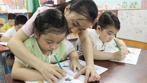 | Học sinh lớp lá 1 Trường mầm non Sài Gòn trong giờ học làm quen với chữ viết - Ảnh Tuổi trẻ |