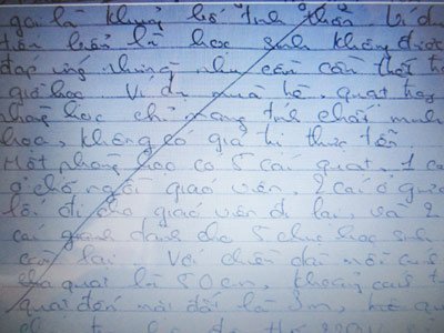 Tuy nhiên, bài văn chỉ được điểm số 0 cùng với lời phê bình của giáo viên “Ý thức kém, em cần chỉnh sửa ngay”.