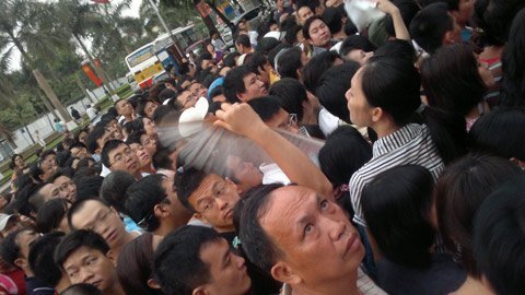 | Phụ huynh xô đẩy tìm cách mua đơn cho con vào Trường Thực Nghiệm sáng 12/5 (Ảnh Văn Chung) |