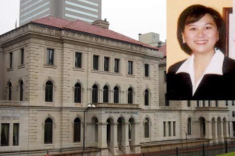 | Bà Jacqueline H. Nguyễn (ảnh nhỏ). Trụ sở Tòa án Phúc thẩm của Mỹ (ảnh lớn). Ảnh: Los Angeles Times - Google |