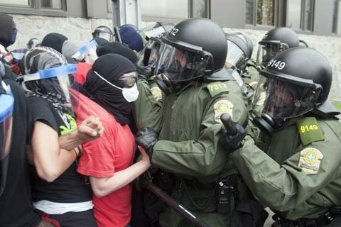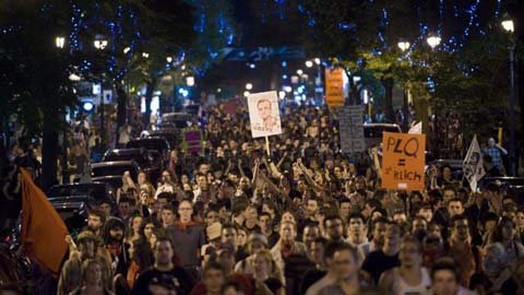 Đêm 20/5, người biểu tình đã đập tan các cửa hàng, mở một trụ nước cứu hỏa làm ngập lụt tòa nhà văn phòng trung tâm thành phố Montreal.