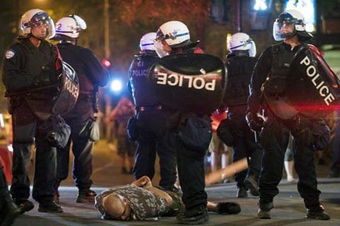 Một phát ngôn viên cảnh sát trả lời phỏng vấn tờ La Presse hằng ngày rằng một người đàn ông khoảng 40 tuổi đã bị thương nặng ở đầu khi bị cảnh sát bắt.