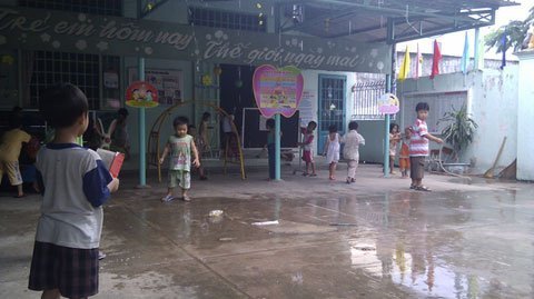 | Không có bảo mẫu, trẻ tự do chơi tại trường trưa 24/5. (Ảnh: Tuổi trẻ) |