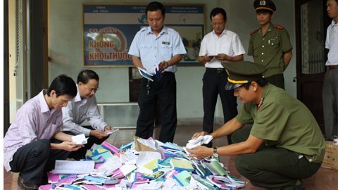 Qua kiểm tra, Đoàn phát hiện có 16 cơ sở vi phạm, thu giữ 2.250 cuốn sách giáo khoa, tài liệu thi dưới dạng phao thi các loại được các cơ sở photocopy sao lậu, phát hành.