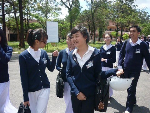 | Thí sinh rất vui vẻ vì làm bài được (Ảnh Tiểu Long) |
