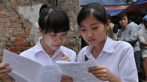 | Thí sinh trao đổi bài sau môn thi Hóa học (Ảnh: Văn Chung) |