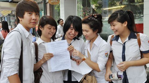 | Thí sinh phấn khởi vì làm được bài (Ảnh chụp tại Hội đồng thi Trường THPT Việt Đức, Hà Nội) |