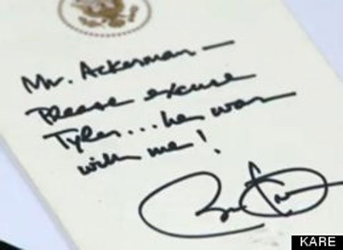 Cậu bé Tyler Sullivan đã trốn học hôm thứ Sáu tuần vừa rồi, tuy nhiên nhiều khả năng là cậu sẽ được tha thứ nhờ một bức thư đặc biệt. Đó chính là bức thư tay của Tổng thống Obama gửi lời xin lỗi giúp Tyler.