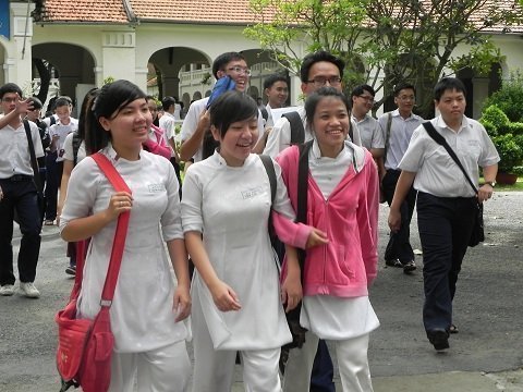 Tại Hội đồng thi Trường THPT Chuyên Lê Hồng Phong, Quận 5 TP.HCM cho thấy, niềm vui hiện rõ trên khuôn mặt của các thí sinh sau khi ra khỏi phòng thi. Đề thi môn Ngoại ngữ năm nay được nhiều thí sinh đánh giá là khó hơn của năm trước. Tuy nhiên với các bạn học tốt môn Ngoại ngữ thì có thể hoàn thành bài thi không quá 15 phút. Bạn Thùy Dung THPT Hùng Vương, Q.5) tươi cười nói: "Em thấy đề rất dễ, làm chỉ mất 15 phút đã xong. Hoàn thành xong kỳ thi này khiến em thấy rất nhẹ nhõm và thoải mái".