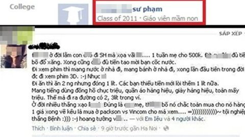 Mới đây, cư dân mạng xôn xao về việc nữ sinh có nickname B.Y, khoa Giáo dục mầm non tại một trường sư phạm, văng tục chê bạn trai ít tiền trên mạng xã hội facebook. Ít ai tưởng tượng được một cô nàng xinh xắn, dễ thương lại có thể “phun châu nhả ngọc” ra những lời lẽ tục tĩu, khó nghe đến như vậy để miệt thị, khinh thường bạn trai khi bạn này “đi xe SH nhưng trong ví chỉ có 200 – 300 nghìn đồng” (trích status trên trang cá nhân của nữ sinh).