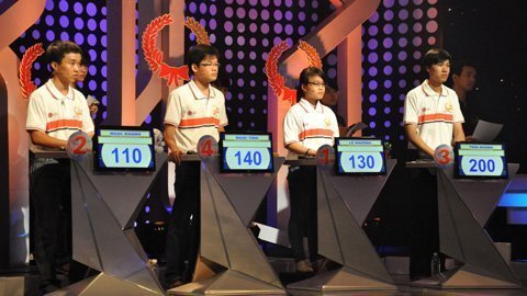 | Các thí sinh trong phần thi Tăng tốc trận chung kết Đường lên đỉnh Olympia 2012. (Ảnh: Văn Chung) |