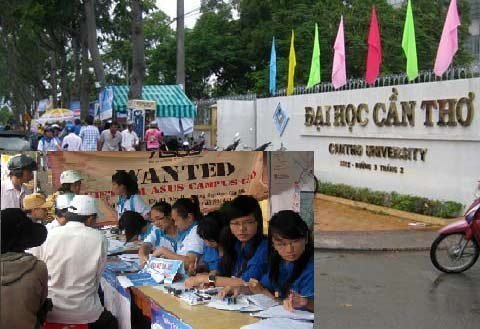 Trường ĐH Cần Thơ đã chuẩn bị sẵn sàng cho kỳ thi ĐH năm 2012, các tình nguyện viên tư vấn và giúp đỡ các thí sinh miễn phí (ảnh nhỏ trái). Ảnh: Quốc Huy