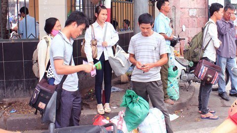 Bến xe Giáp Bát tập trung khá đông sĩ tử lên Hà Nội dự thi ĐH, CĐ. (Ảnh Phan Chung)