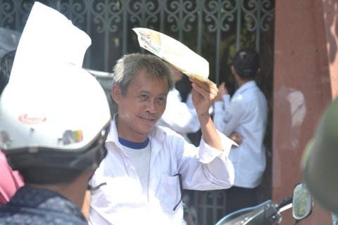 Sắp hết giờ thi, người nhà đã đứng chật kín cổng trường để “ngóng” sĩ tử. Ảnh Anh Tuấn |