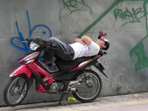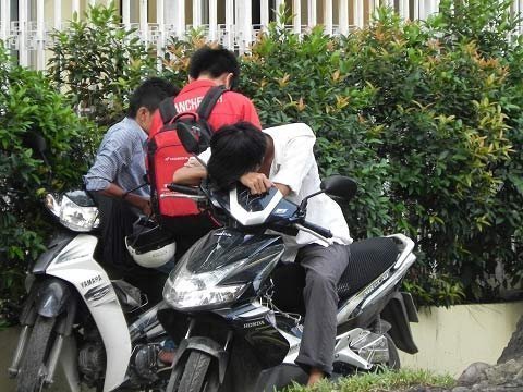 Tranh thủ ngủ ở mọi tư thế có thể. Ảnh Hiểu Minh |