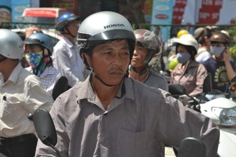 Khuôn mặt phờ phạc ngồi ngóng con. Ảnh Hiểu Minh |
