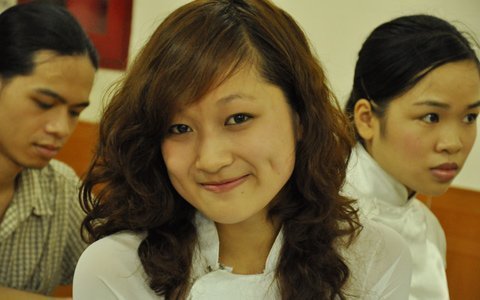 Nụ cười rạng rỡ của thí sinh trước giờ thi năng khiếu. |