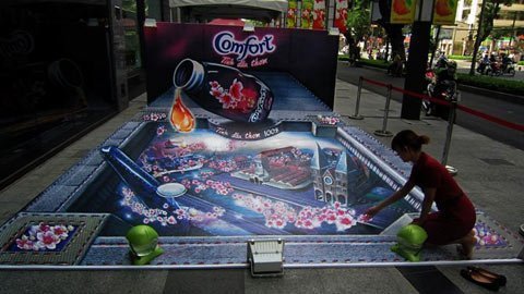 Tranh 3D đường phố thường được vẽ bằng máu nước hoặc sơn mài (trên tường hoặc trên bạt) nên vẫn đề thời tiết cũng thực sự gây nhiều trở ngại” – Dũng chia sẻ.