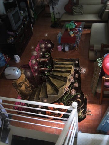 “Đến với tranh 3D cũng như âm nhạc đều là sự tình cờ” – Dũng nói. Một người bạn thân mời mình tham gia vẽ tranh 3D. Ban đầu mình nghĩ đó chỉ là dựng đồ họa, thiết kế nhà cửa. Nhưng khi nhận công việc mình mới biết là vẽ tranh 3D đường phố. Mình thấy khá hay nên đã tìm hiểu và vẽ những tác phẩm đầu tiên.