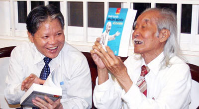 Bộ trưởng Bộ Tư pháp Hà Hùng Cường tặng sách GS Vũ Đình Hoè năm 2009. Ảnh (sưu tầm)