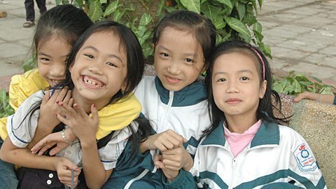 Nụ cười hồn nhiên của HS Trường Tiểu học Vĩnh Ngọc, huyện Đông Anh, Hà Nội trong giờ ra chơi. (Ảnh: Văn Chung)
