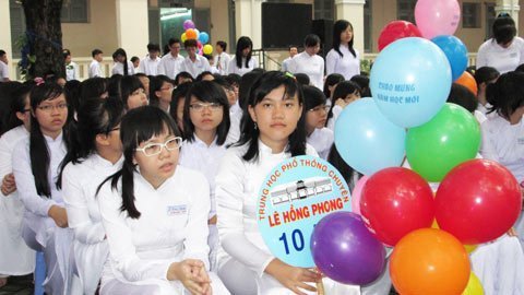 | Học sinh trường THPT chuyên Lê Hồng Phong trong lễ khai giảng năm học 2012- 2013 |