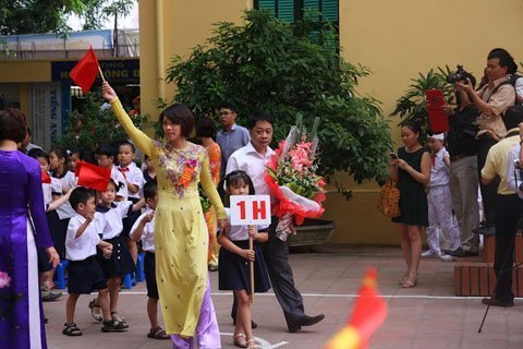 “Hôm nay lễ khai giảng đã diễn ra thật ý nghĩa và vui tuơi, chúc các con có 1 năm học mới thật ngoan, khỏe mạnh và học tập thật tốt. Chúc các mẹ yên tâm công tác, chăm sóc gia đình và lo cho các tập 2 nữa ạ!”