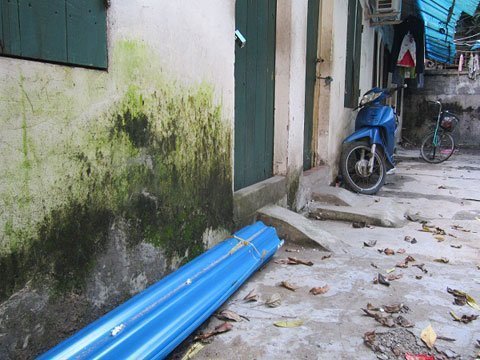 Xóm trọ của T, sinh viên Trường ĐH Bách Khoa Hà Nội tại khu Đội Cấn sau trận mưa như trút nước.