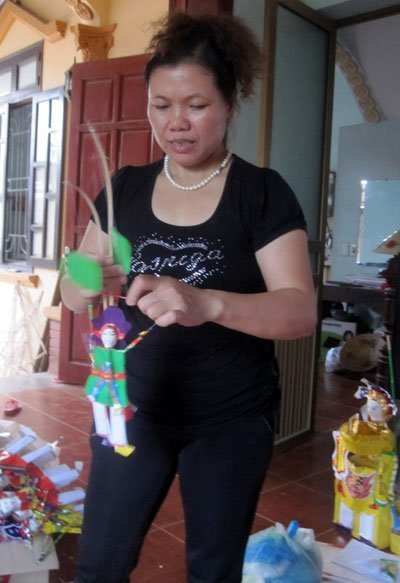 | Chị Tuyến miệt mài làm những tiến sĩ giấy phục vụ mùa trung thu năm nay |