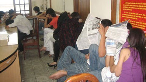 Thanh thiếu niên phê thuốc chờ test ma túy tại công an.