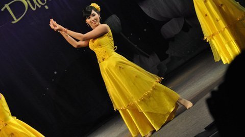 | Bước sang phần thi tài năng, 6/20 thí sinh có phần thể hiện ấn tượng đã được lựa chọn biểu diễn trong đêm chung kết. Trong ảnh là phần thi múa Vũ khúc ánh trăng của Bùi Thị Ánh Chi. |