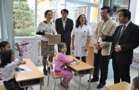 Thăm lớp học hy vọng, Bộ trưởng Phạm Vũ Luận gửi lời cảm ơn các thầy cô đã tận tình dạy dỗ các cháu nhỏ mắc bệnh hiểm nghèo