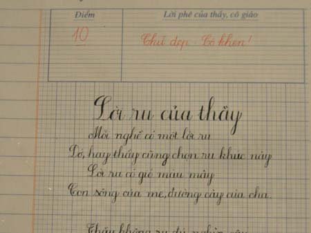 | Bài viết chữ đẹp của học trò tại Hà Nội được cô cho điểm 10. (Ảnh: Văn Chung) |