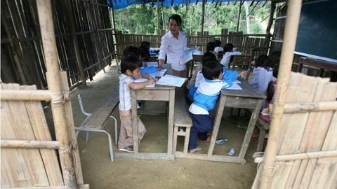 non được hái vội vã khiến phòng học vốn liêu xiêu lại càng mau hư hại, mối mọt.