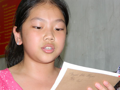 Học sinh lớn tuổi nhất lớp là 19 tuổi, còn bé nhất mới 12 tuổi. Đó là em Nguyễn Thu Huyền, học sinh lớp 5B, trường Tiểu học Cát Linh. Huyền đã học ở đây được gần 10 buổi. “Em được mẹ dẫn đi thắp hương ở đình Hào Nam và biết lớp học. Mới đầu em cũng chưa thích lắm nhưng sau khi nghe vài lần cháu rất thích, hát sẩm rất hay", Huyền cho biết.