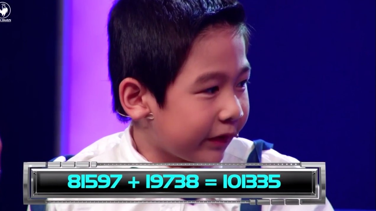 Trả lời đúng ở các phép tính với số nhỏ, Tùng Quân khiến mọi người đi từ bất ngờ này đến bất ngờ khác khi xuất sắc đọc ngay kết quả của các phép toán gồm các số lớn nhiều chữ số. Thậm chí là các phép toán với các số có đến 5 chữ số.