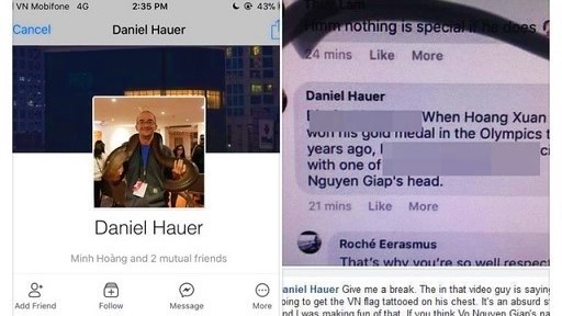 Cụ thể, trong một nhóm trên Facebook, sau khi thấy có người nói "sẽ xăm hình lá cờ Việt Nam lên ngực nếu đội tuyển U23 Việt Nam giành chức vô địch" thì Daniel Hauer đã có bình luận ngay bên dưới thể hiện sự không đồng tình một cách khiếm nhã - và còn được cho là "xúc phạm" - tới cố Đại tướng Võ Nguyên Giáp.