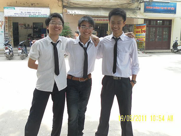 | Trung Phong ngoài cùng bên phải chụp chung với các bạn học cấp III, Trường THPT Chuyên ĐH Khoa học tự nhiên, ĐHQG Hà Nội. |