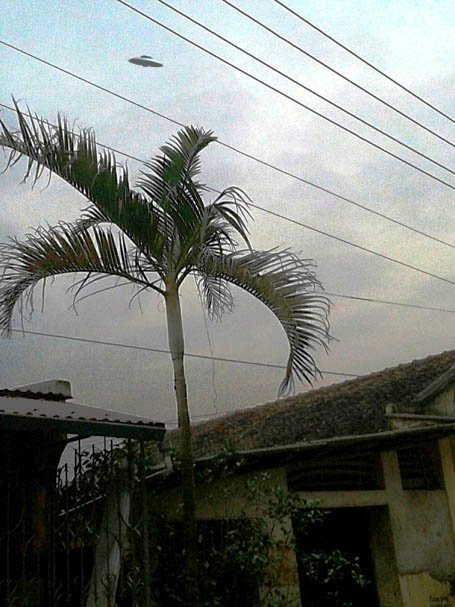 Bức ảnh này ban đầu em chỉ định chụp cây cau, do nó đang vươn cao đến sát đường dây điện. Nhưng khi xem lại bức ảnh thì mới phát hiện có hình một chiếc đĩa bay trên không trung”.