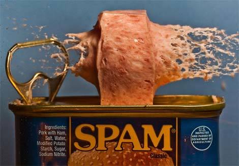 | Một viên đạn đâm xuyên hộp thịt ăn liền Spam. Ảnh: Exclusivepic. |