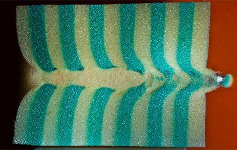 | Viên đạn xé toạc một miếng bọt cao su. Ảnh: Caters. |