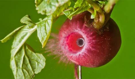 | Ở một góc chụp tương đối mạo hiểm, ông Sailer đã "chộp" được khoảnh khắc viên đạn xuyên thủng một củ cải đường. Ảnh: Caters. |