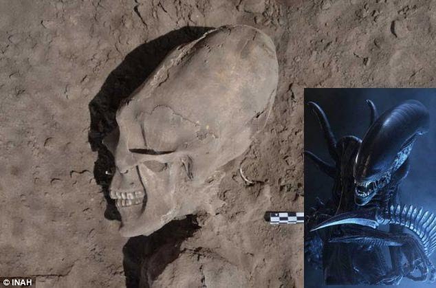 | Chiếc hộp sọ có hình dạng như đầu của ‘người ngoài hành tinh’ trong phim khoa học viễn tưởng Quái vật không gian. |
