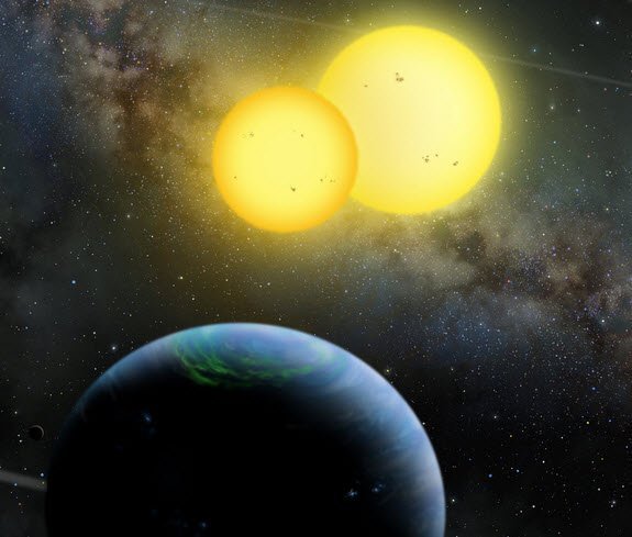 Các nhà khoa học đã lần đầu tiên phát hiện một hệ hành tinh quay quanh hai ngôi sao. Hệ hành tinh, được đặt tên là Kepler-47, bao gồm 2 ngôi sao quay quanh nhau theo chu kỳ 7,5 ngày. Một trong hai ngôi sao giống với Mặt trời của chúng ta, còn ngôi sao kia có kích thước chỉ bằng 1/3 và mờ hơn 175 lần.
