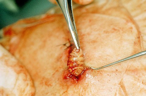 Những con giòi gây hại trên được xác định là ấu trùng của loài ruồi trâu Dermatobia hominis, sống chủ yếu Trung và Nam Mỹ, theo Viện Khoa học Nông nghiệp và Thực phẩm thuộc Đại học Florida (Mỹ). Bất chấp khả năng làm trầm trọng hóa vết thương, những sinh vật này dễ bị tiêu diệt hoặc loại bỏ.