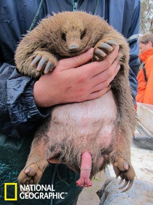 Nhà khoa học Lucy Cooke phát hiện ra Echidna, loài thú lông nhím đẻ trứng và sở hữu bộ phận sinh dục có 4 vòi, ở Tasmania, Australia.